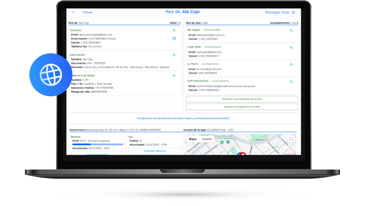 la localización del usuario y avisa a la familia.