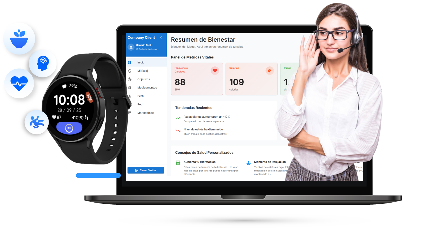 con el usuario a través del Ellie Watch, y en caso de